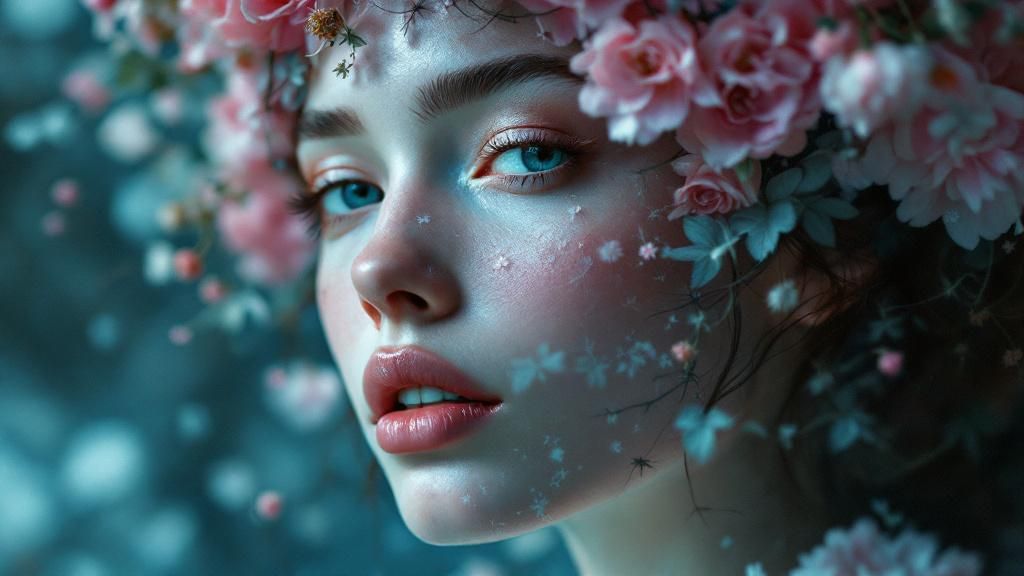This commitment to amplification emerges most strikingly in their portrayal of cultural figures and celebrities. Brad Pitt appears ethereal and vulnerable; Bill Murray comes across contemplative with botanical elements adorning his features; Drew Barrymore is presented with an force that transcends conventional beauty photography. These images refuse simple classification, residing instead in a liminal space between individuality and projection. The figures remain recognisable yet fundamentally altered, reimagined through Inez and Vinoodh’s collaborative vision into something far more intricate and visually compelling than conventional celebrity portraiture typically achieves.